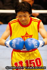 この試合、3月に行われていたら小関は準備は十分とは言えなかっただろう。当初、指名挑戦者として迎えるはずだった大国アメリカのベテランステファニー・ダッブスが交通事故でキャンセルとなり、試合1ヵ月前を切ってクリカノックが代役に選ばれたのである。百戦練磨の米国人を想定してハードワークに取り組んできたチャンピオンにとって、切り替えはそう簡単ではなかったはずだ。だから震災によって延びた時間、「今の自分にできることは、いい試合をすることと言い聞かせて」練習に打ち込んだ。そして今は「どんな相手がきても対処できる引き出しができた」と、頼もしい。なにしろこの再軽量級のチャンピオンは、今回の試合でどうしても名誉挽回したいのだ。「前回の結果をずっとひきずっていたけれど、この大きなイベントに向けて正月返上で練習してきた。相手が代わっても自分の気持ちは変わらない」小関は、2月の記者発表の席でこう語っている。前回の結果とは、昨年12月、秋田屋まさえ(ワイルドビート)とのV5戦が負傷ドローで終わったことを指す。バッティングによる秋田屋の負傷で3回終了時に試合が止められた時、小関はまるで敗者のようにうなだれた。そんな消沈したV5の後、修行者のような練習を再開し、「体を追い込むことで気持ちを楽にしてきた」のである。タイからやってくるクリカノックは、豊富なムエタイキャリアを持ち、国際式転向後は無敗を誇るホープ。そんな挑戦者を迎え、無尽蔵のスタミナとそれに裏打ちされた手数が持ち味の痩身のサウスポーは、今回こそ自分が理想とする「相手をきりきり舞いさせて、圧倒的な勝利」を実現したいと意気込む。 |